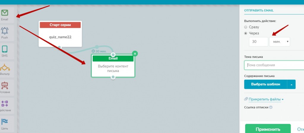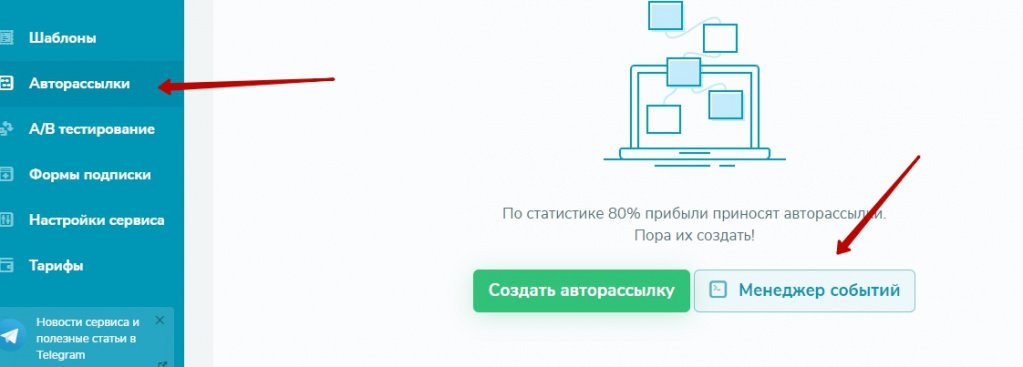 Далее настройка авторассылки происходит в SendPulse. Выбрать "авторассылки"/"создать авторассылку"/"создать событийную цепочку сообщений". Где справа выбирать созданное событие,для которого создается цепочка,после чего настраивать частоту имэйл рассылки