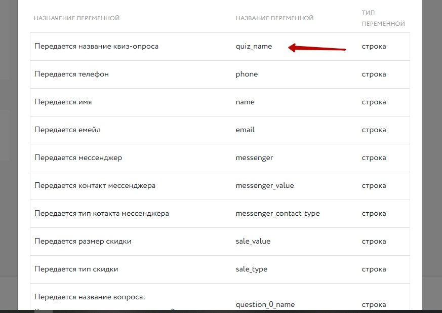 Выйдет окно с переменными,значение которых необходимо перенести в SendPulse