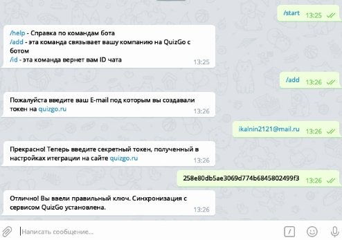 После того,как все данные будут введены,установится синхронизация с сервисом QuizGo