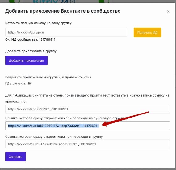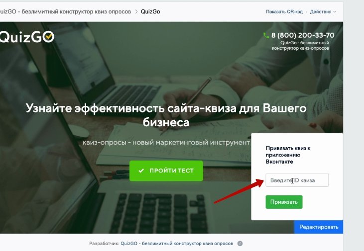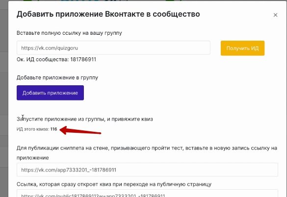 У вас выйдет окно,в которое нужно добавить ID квиза