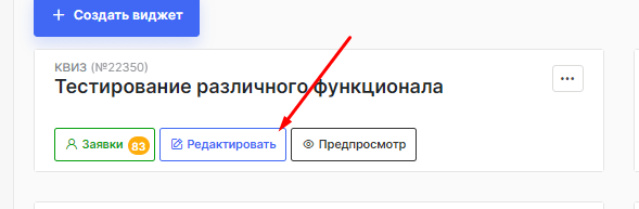 Выбрав нужный вам квиз, нажмите "редактировать"